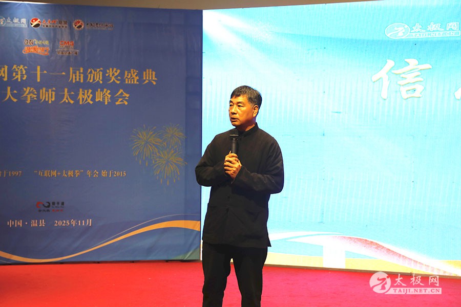 11月7日至9日,太极网第十一届颁奖盛典在太极圣地河南温县举行。来自全国各地乃至海外的四百余名各流派拳师拳友,怀揣对太极拳的热爱与执着齐聚于此,共襄“互联网 + 太极拳”年会的高光时刻。作为活动的重要主题环节,大拳师太极峰会于8日下午在温县海旺弘亚酒店举办 —— 该峰会是太极网打造的太极拳主题研讨会与名师讲坛品牌活动,旨在为与会人员搭建专业的分享、交流与学习平台。现场大咖云集,多位太极拳界不同流派的名师名家带来深度主题分享,为参会者献上一场太极文化盛宴。
