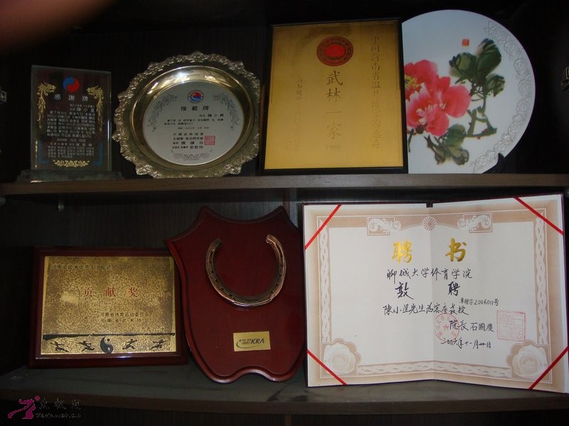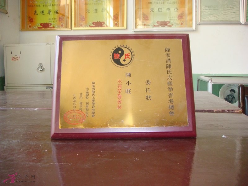 “情细故里,弘扬太极”及太极证书专柜 “武林一家”及陈小兴被聘任客座教授等六幅荣誉陈小旺和陈小星被聘永久名誉会长和主席陈小星被聘陈式太极香港总会永久名誉会长
