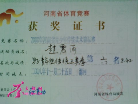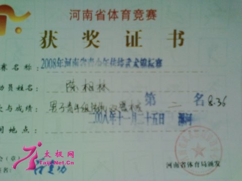 中国陈家沟太极拳学校参加了一个集体项目,并荣获该集体项目第二名”。