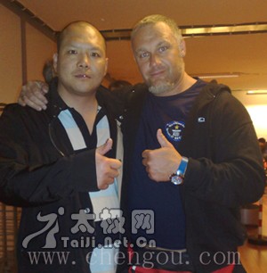 应吉尼斯世界总部邀请,太极拳“常胜将军”王战军4月16日赴意大利参加吉尼斯人物之最表演,与最高的人,最矮的人,头发最长的人等一起表演,王战军在表演中打破自己的吉尼斯纪录(原纪录为98公分)2公斤重物弹出108公分。 与吉尼斯世界纪录“口吞剑”者 与吉尼斯世界纪录“快脚踢靶”者 与吉尼斯世界纪录“力掀轿车”者