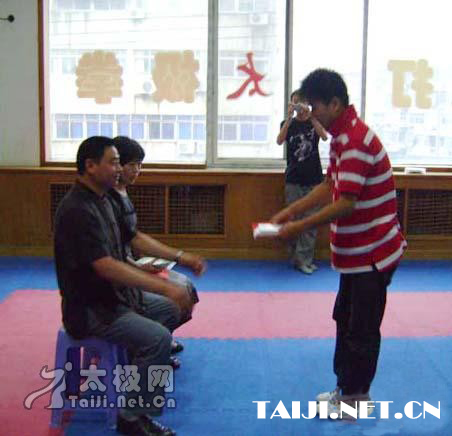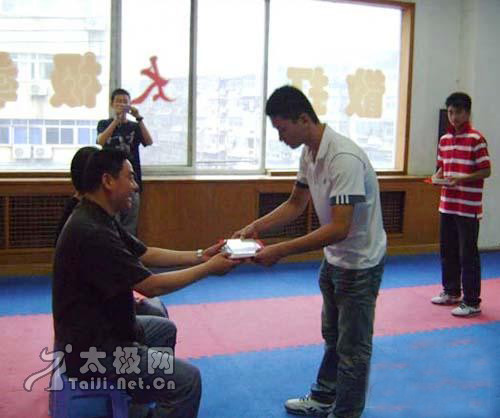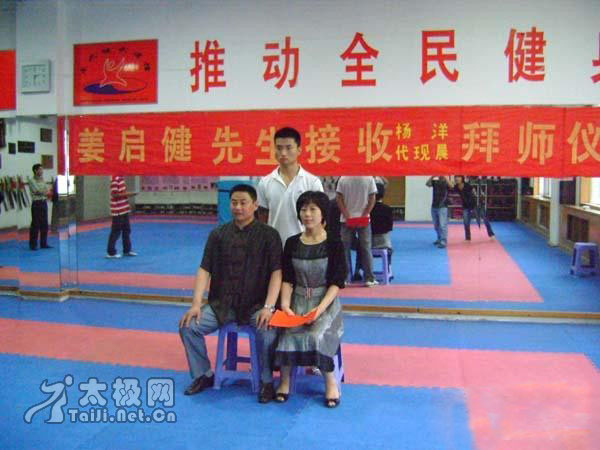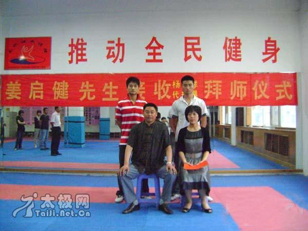 2009年6月8日下午6点,在徐州市龙之健武道馆里,一场简单而喜庆的拜师仪式正在举行。龙之健武道馆馆长兼总教练、太极拳名家姜启健先生正在举行收徒仪式。拜师仪式由陈庆州大师的入门弟子董晓伟先生主持。拜师弟子的家长和姜启健先生在徐州的入门弟子见证了收徒仪式。 姜启健先生本次收徒两人,他们是杨洋和代现晨。两人均跟随姜老师习武多年,人品端正,武艺高强。经过他们的再三申请以及家长的请求,最重要的是他们两人的不懈努力,最终通过姜老师的严格考验,成为了姜启健先生的第七、第八位入门弟子,成为陈氏太极拳第十三代传人。