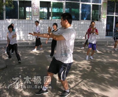 太极拳作为武术瑰宝,越来越被人们所喜爱。近日,陈家沟武术院里习练太极拳的氛围很浓,来自焦作理工大学的十多名学生在这里学习正宗的陈式太极拳,在李志强教练的带领下冒着酷热认真学习。 教练李志强在上课 教练李志强在上课 教练李志强在上课 [page]