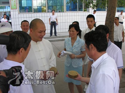 今天下午,河南省教育厅厅长蒋笃运在焦作市委书记路国贤的陪同下,莅临陈家沟武术院调研,就太极拳中专、太极拳文化和太极拳发展与太极拳名家交流,并观看陈家沟武术院学生和陈家沟太极拳“四大天王”陈二虎、王战军、陈冲、张福旺的表演。
