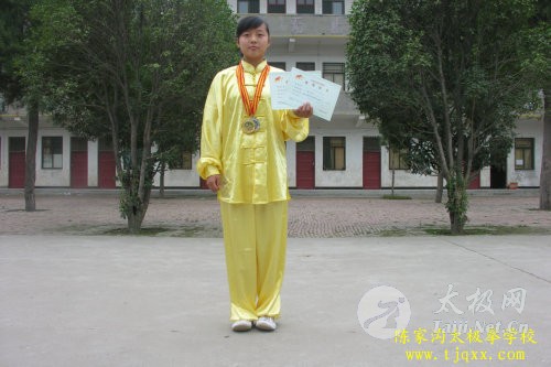 | 8月份,我们在两次重大比赛中获得的喜人成绩。在8月7号的河南省锦标赛中,我校共取得了9个冠军,其中有5个推手冠军, 李佳威 、王岩、路冰洁分别夺得男子、女子长器械第一名,王振获得了国家竞赛套路第一名。 8月20号,我校在焦作太极拳交流大赛中分别获得了,三组推手冠军,四组套路第一名。