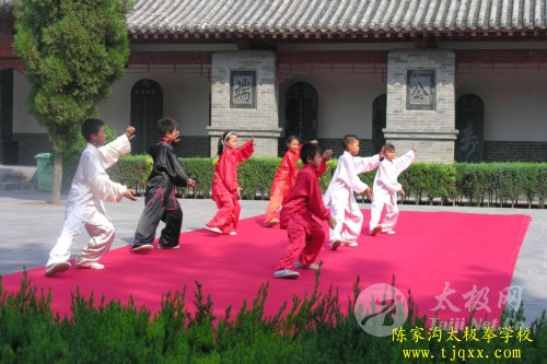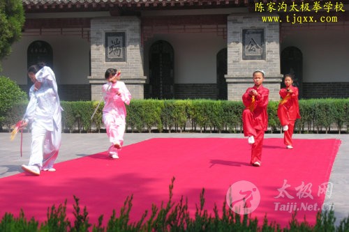 | 下图为我校部分师生在陈家祖祠内表演采风,其中有陈氏太极拳套路、器械及集体,对练等。