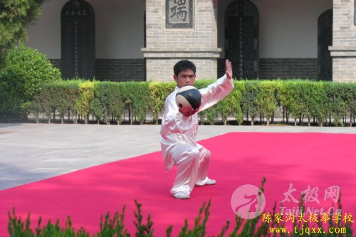 上图为太极球演练,其动作主要是来锻炼底盘、手指、手腕、大小臂及腰腿之力,对练习陈式太极拳有套路有一定的帮助,另外对拳理拳法的认识起到了抛砖引玉的作用。