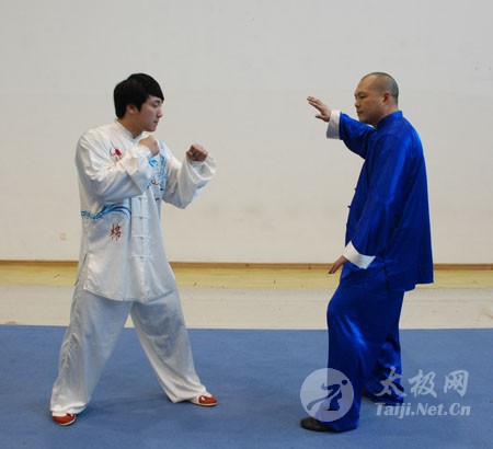 甲乙双方对峙,甲方用太极之势迎战