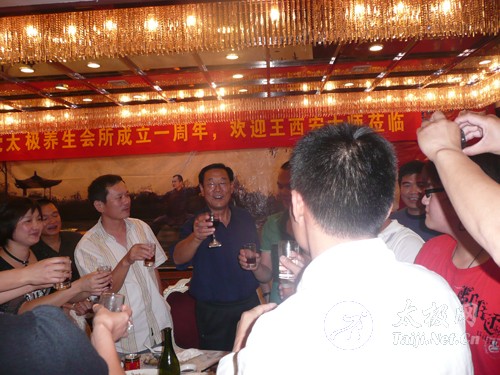 会所会员汇报表演  王西安在回答会员提问  王西安在庆祝会上讲话  王西安在向会员祝酒  王西安在给会所主教练演示拳架 |