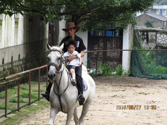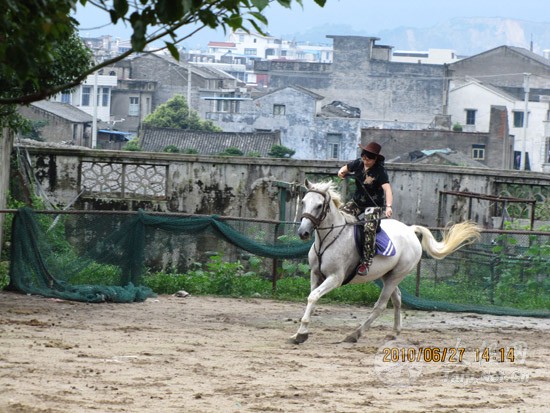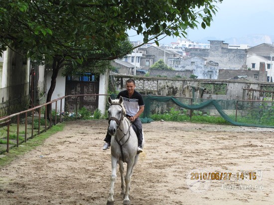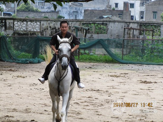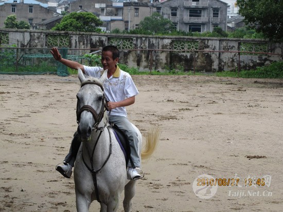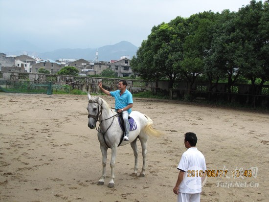 跑马大罗山 会员多情趣 ——温州陈上党陈式太极养生会所组织会员郊游 2010年6月27日,温州市陈上党陈式太极养生会所的十几名会员,在会长陈上党的带领下,利用假日,分乘四辆小轿车,来到温州大罗山五美景园。中午聚餐之后,大家在景园的跑马场美美地展示了一番骑士的风采。