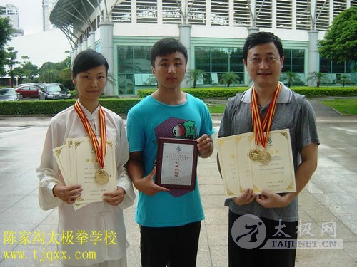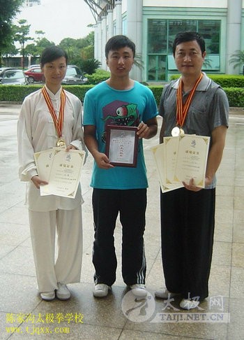 2010年在澳门举办了第2届海峡两岸及港澳地区传统武术交流大赛,陈家沟太极拳学校教练王震带领他的学生参加了此次比赛,从来自两岸四地35支近300人的队伍中脱颖而出获得了本次大赛的技术风格奖。 王震简介: 2002年,河南省焦作市武术锦标赛竞赛套路第三名。 2005年,辽宁葫芦岛全国武术比赛套路第一名。 2006年,河南省青少年武术锦标赛男子对练第一名。 2007年,6月,河南省青少年武术锦标赛男子双器械第二名,竞赛套路第二名。 10月,河南省武协杯太极拳交流大赛男子推手65公斤级第二名。 2008年5月,焦作市太极拳精英对抗赛男子65公斤级推手第二名。 6月,第三届中国陈家沟太极功夫精英赛男子65公斤级推手第三名。 10月,潮汕太极拳邀请赛太极推手65公斤级第一名。 2009年,5月,海峡论坛武术交流大赛男子B组陈氏太极拳、剑两项金奖。 8月,河南省青少年传统武术锦标赛男子70公斤级推手第一名,传统陈氏太极拳套路第一名。 8月,第五届中国焦作国际太极拳交流大赛男子组陈氏太极拳规定套路第二名。 |