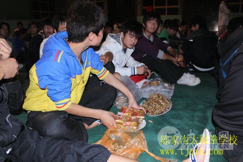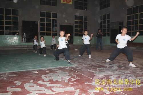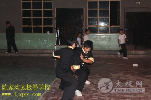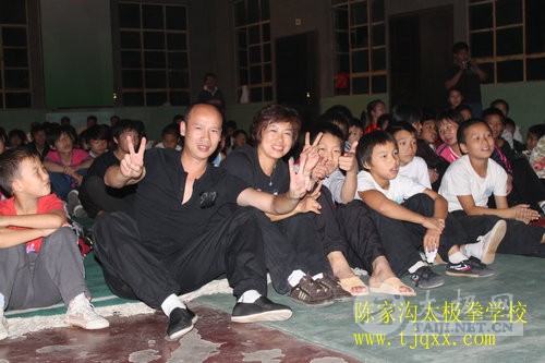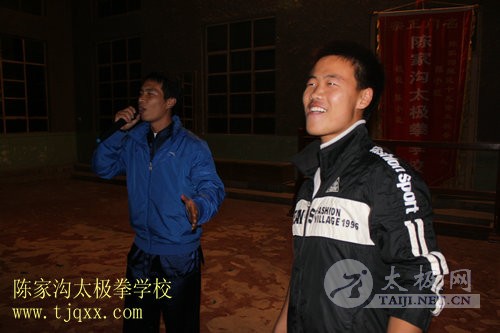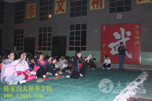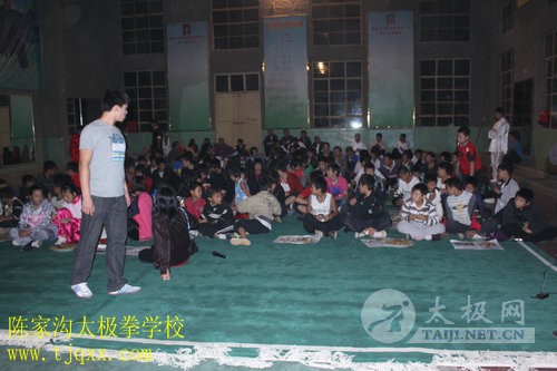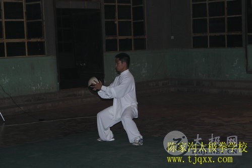 9月22日晚,月光融融,情意浓浓;中秋之夜,花好月圆!在这个特殊的的夜晚,陈家沟太极拳学校全体教职工汇聚在学校大厅,举行了“2010年中秋节晚会”。 主教练陈辉做晚会主持人 大家欢聚一堂 学校教练:张一帆为大家《表演老架一路》 学校教练:闫子腾为大家表演《太极球》 张晓伟和陈齐 王陪和张豆为大家表演《推手》 青少年班为大家表演《大架二路》 总教练陈自强为大家表演《新架一路》 师徒二人即兴合唱 成人学员为大家表演双节棍 东北大姐为大家助唱