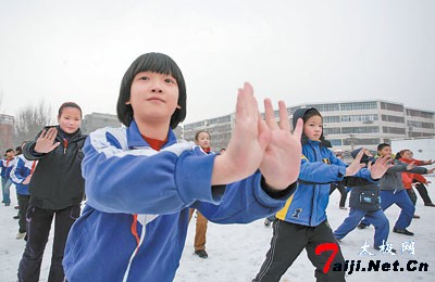 收脚、侧步、转腰、穿掌……昨日下午,在乌市第49中学操场上,五年级(3)班的66名同学正在跟随体育老师打太极拳。从今年5月开始,49中正式在体育课上引进了太极拳这一中国传统武术项目,该校三至六年级的学生目前都已经学会了整套的太极拳法,而这种新颖的教学内容和教学方式也融进了课间广播体操。 “我很喜欢打太极拳,因为它能像体操和跑步一样活动筋骨,强身健体。”该校五年级(3)班的蒙古族学生纳清的太极拳打法颇受同学和老师的赞誉,每次上体育课时,他都会站在最前面为同学做示范。“我感觉太极比其他武术都柔,能以柔克刚!”说起练太极拳的好处,五年级(3)班的邵雪阳第一个发言。“老师说太极拳人人都可以练,我们学会了打太极,也学会了一门知识。”维吾尔族学生耐吾夏提也争着说起了练太极的好处。 在新疆师范大学专修武术的金春是五年级(3)班的体育老师,他说,由于自己是专修武术的,所以对太极拳比较了解,自从2005年9月到49中工作后,就一直有在学生中推广太极拳的想法,直到今年5月才正式开始尝试。金春说,之所以选择把武术中的太极拳融入到体育课中,是因为练太极能修身养性,好动是每个孩子的天性,练太极除了能强身健体之外,还能使学生安静下来,陶冶学生的情操。 市49中副校长吕平说,现在的课程标准比较灵活,学校可以发挥自己的潜能,根据自己的实际情况设置体育课程,之所以选择把太极拳融入到体育教学中,是因为太极属于中国的传统文化瑰宝,让学生在体育课上学习太极能传承中国的传统文化,掌握一门知识,而且安静沉稳的太极与平时活跃的体育课相结合,是静与动的结合。从5月引进以来,三至六年级的近1000名学生都已学会了打太极拳,这项创新也受到了学生和家长的欢迎。在采访中,不少学生表示,原本自己并不喜欢上体育课,自从把太极拳引到体育课上以后,很多原本不喜欢上体育课的学生,现在上体育课的积极性都很高。 除了把太极拳融入到体育课中之外,乌市第49中学还把太极拳、音乐、健美操、集体舞、武术等元素加入到了广播体操中。吕平说,由于建国50多年以来总共只出了8套广播体操,内容比较单调,平均一套操要做好几年,为了增加学生的兴趣,今年5月开始,49中还专门组织学校体育组和音乐组的老师共同编了一套新的广播体操,时长12分钟,以此作为学校大课间的广播体操来做,把太极拳融入到广播体操中,动静结合。吕平说,这样不仅弘扬了中国传统的文化,而且极大地提高了学生做广播体操的兴致。 |