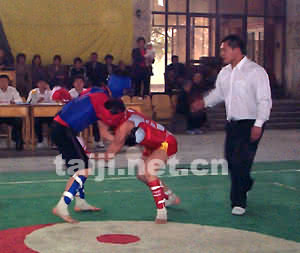 | 4月17日,由温县体育局主办的“陈家沟武术院杯”温县首届武术散打比赛在温县太极武术馆隆重开幕!陈家沟太极拳学校、温县太极武术馆、温县太极少林武校、陈家沟武术院一队、二队共四个代表队28名运动员分别参加了52kg、56kg、60kg、65kg、70kg、75kg六个级别的比赛。 此次比赛是温县武术界的一次尝试性比赛,比赛规则采用国家最新规定的散打规则。各级别为三局两胜淘汰制,每个级别的优胜者将获得奖金。 ![]() ![]() ![]() ![]() ![]() ![]() ![]() ![]() ![]() ![]() ![]() |