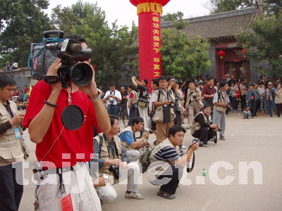 8月21日下午,太极拳祖师陈王廷铜像揭幕仪式在温县陈家沟举行。国际武术联合会副主席雷蒙•史密斯,国际武术联合会秘书长、中国武术协会主席、国家体育总局武术运动管理中心主任、大会组委会主任王筱麟,市领导王太峰、苗绍勇、霍金花、王哲、乔承久、张献华等领导出席了揭幕仪式。