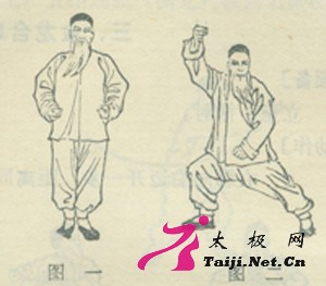 十三太保功 十三太保功是古代导引术、气功和武术相结合的一种锻炼方法。长期以来,一直在民间流传,没有系统整理和公开发表过。一九六五年,王子平先生开始着手整理。这套秘传的健身功的特点基本上是以桩法为主体,注意步型,摆定式,在站桩下进行呼吸。练功要求心静用意,内外相合。 十三太保功是由十三个功式组成。内容有:南山伏虎、北海降龙、金龙合口、鹞鹰抓食、金刚亮臂、久扎金枪、开弓射雕、掌劈华山、夜行飞镖、舟夫背纤、力托千斤、猿手通臂、抡舞石撅。 十三太保功比较适合中老年中体质较好者锻炼。 动 作 一、南山伏虎 [预备] 立正,抱肘(双手握拳,置于腰间),拳眼向外(图一)。[动作] 1.右腿向右侧横跨一大步,呈横裆步(右腿屈膝下弯,脚尖正对身前,左腿伸直,脚尖里扣)。右拳自右腰侧向右上方弧形提起,虎口向上,手臂微屈,左拳同时自腰侧划小弧形置于小腹前,虎口向里(图二)。双目平视,姿势摆定后,以均匀缓慢的速度呼吸,3—9次,呼吸均匀自然。 2.还原,呈立正抱肘式。 3.同1,方向相反。 4.还原。  |