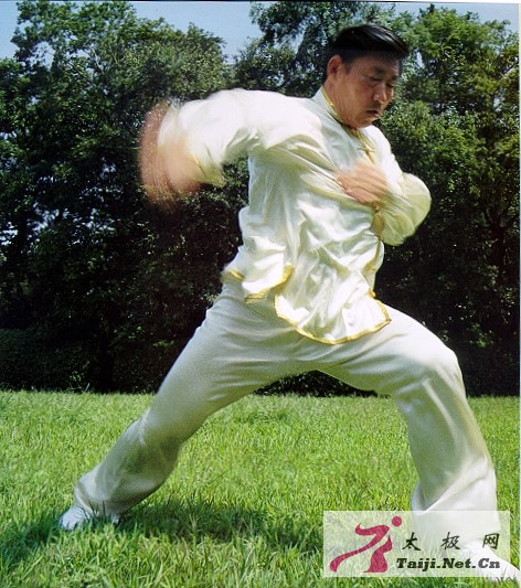 中华武术丰富多彩,虽各有风格特点并自成体系,但“攻防”二字是各家共有的。防者多用柔,攻者多用刚。何谓刚?在发劲时,内外和一,意气风发,将自己的力量发出击点乃为刚。能将自己百分之百的力量发到出击点就是刚劲的最高标准。陈氏太极拳的发劲也有其独到之处,它不仅拳、肘、肩、脚、膝、稍节和主要关节发劲,而且要求周身各个部位都能发劲。拳谱中说;“ 唯有五阴并五阳,阴阳不偏称妙手,妙手一运一太极,太极一运化乌有,挨着何处何处击,我也不知玄又玄。” 当然能做到这一点非一日之功,可见拳术水平练到高级境界,不仅周身处处都能发出劲来, 并且是劲由内换,连化带发自然顺遂。 太极拳是刚柔并用之拳。发劲只是太极拳中刚的一面,太极拳练好,劲自然就能发得好。因此,欲练好发劲须从练拳入手。 练习陈氏太极拳分两个阶段 其一,以外形动作引动内气 内气和动作是相辅相成互相配合的,外形动作可以导致内气活动,内气活动又能催动外形初学时,要按其具体要求力争动作合度,就是遵循陈氏太极拳对各个部位的要求。运动规律和逐渐的运动标准,寻求和进一步掌握内气运行的方法。先在定势时(如预备式,单鞭等)思想专一地按照陈氏太极对身体各个部位的要求来对照。目前出版的一些太极拳书中对此都有详细介绍,这里就不在详述。其中介绍的虽然比较具体,就是尺度较难掌握。例如;松肩,究竟怎样松?松到什麽程度;含胸,究竟怎样含?含胸过了影响塌腰,含多少为过?这不是象木工,指出准确的尺寸。 在古拳谱中说:“ 只可神会不可言传”。说明对于这些细节用文字和语言无法表达,需要身教口授, 可是多数太极拳爱好者没有理想的条件。因此我们须用辨证的态度来探讨这个问题。为什么陈氏太极拳对身体的各个部位都作了具体的规定?目的是心气下降,气沉丹田。 明确了这一点,定势时体会一下,如果感到心气下降,气沉丹田,就说明,对身体各个部位的要求已合格。如果感到重心不稳,气向上浮,便可以检查一下,看是哪个部位做得不合格影响了气沉丹田。然后调整一下,以达到气沉丹田为止。用这种方法做自我校正,掌握陈氏太极拳对身体各个部位的要求则较为容易了。 在定势时掌握了陈氏太极拳对身体各个部位的要求,能使“心气下降,气沉丹田”。运动时再按照陈氏太极拳的运动规律(以腰为轴节节贯串,周身骨节依次排开)及其对身法的具体要求和手足运行的路线进行练习,可以导致内气出入丹田,按照具体不同的动作变化,动如流水地循行周身。 陈氏太极拳的要求比较严密,初学者往往会顾身不顾手,动作不协调,出现顾此失彼的现象,用太极拳的术语来说:就是动作中产生了“丢”和 “顶” (过者为顶、不给者为丢)。陈氏太极拳要求按其运动规律不丢不顶圆转自如,运动中产生了丢和顶,就直接影响了内气的运行。所谓下功夫,就是不辞劳苦地走拳架,细心揣摩,对照遵循法则,逐渐缩小运动当中的 误差。运动误差越缩小内气的流量就越能增大。并且受到的阻力减小,动作能够按其法则基本协调,内气则可以勉强贯通。 其二,以内气催外形 动作基本协调,内气能够贯通,运动则产生了质量的变化,即从以外形引内气阶段过度到以内气催外形的阶段。古拳谱中说:“以心行气,以气运身,内气不动, 外形寂然动,内气一动,外形随气而动。” 意识指挥, 内气贯通使肢体较为系统的运动体系,一处动,百骸皆随,一处静全体皆静。到此阶段,练习陈氏太极拳一些要求和法则已经是不思而得,不会出现明显的顾此失彼的现象和运动误差。但这种体系在技击当中还不能完全适应,受到外界的影响,容易乱套,因而在此基础上应继续下功夫巩固其运动体系,使其在任何干扰下,都能顺应客观条件的变化,成为 “撞之而不开,破之而不散,浑然一圆”的运动体系,方能“立于不败之地。” 内气与肌肉的关系 内气源于脏腑,行于经络,布流周身,这是人体的自然生理现象。练习陈氏太极拳要维护、掌握和利用这种规律。内气本身是十分脆弱的,动作中出现丢和顶,内气便受阻。内气输送到经络,由经络渗透传导到肌肉,肌肉 ,就是采用陈氏太极拳的锻炼方法,使脏腑产生的内气才能充分的发挥其作用。否则,练习时不明其理,不知道遵循法则、克服丢顶的弊病,仍用拙力。轻者练习感到别扭,影响内气的贯通,拳术水平不能进益;重者将会导致内气回流,使器官负载,影响脏腑的正常活动。有人练习后感到胸闷倒饱,皆为内气回流所致。 古拳谱中说:“意气君来、骨肉臣。”内气与肌肉的关系如同雷管与炸药的关系。雷管本身没有多大爆发力、爆炸的主要力量是炸药、可是炸药没有雷管来引爆不行、不按适当的比例也不能充分发挥炸药的作用。练太极拳时出现丢顶、肢体互相矛盾、力量互相抵消、内气不贯通、发出来的劲为零断劲、就如雷管和炸药的比例不适当、炸药不能完全引爆。 怎样发劲 古拳谱中说:“身如弓弦手如箭”,“劲起脚跟行于腿,主宰于腰发于稍”(这里的“手”和“稍”并非局限于“手”和“四稍”,而是指击点, 因为太极要求周身各个部位都能发劲)。例如:掩手肱拳,腰向左转、往上贯穿背、肩、臂、右拳随着腰的旋转向右前发出;往下贯穿胯、腿、足,足踏在地面上产生反作用力,使其先由腰传导到足,再由脚向上通过腿、胯、腰、背、臂,发于右拳。重心