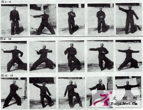 第一势 金刚捣碓 势名考释:金刚捣碓一势,取义为象形之类。势中最末一动作以左手仰作石臼,右手握捶下捣,如古代农家舂米之状,使人顾名思义,学后难忘。金刚原系佛门护法力士,加此二字,美化名字,更便记忆。亦可证明张三丰创太极拳的说法不实。因道家创拳,决不能用佛语命名。其他流派太极拳均无此名。 要领:陈式太极拳一路共4个金刚捣碓,而动作连接不同。第一势共7个动作。眼法以正前方为主。身法左、右、左、右、左凡五转。步法从自然步变小正马步,右小盘步,左前虚步,左扑步,右侧马步,左大盘步,右前虚步,左独立步,成小正马步。手法包括前掤、引掤,进左步右双采,左挤右按,左转身化拿,右膝打裆,震脚等法。 歌诀:捣碓着法变无穷,掤采挤按学用精。马弓盘虚步十变,顺逆缠丝如游龙。 第二势 揽擦衣 势名考释:此势是说明作用的。陈式原名揽擦衣。洪师因它的着法是从右外侧接手。截拦来劲,发劲迅速轻灵,擦衣而发,不是将对方揽在怀中的,故改为拦擦衣。 有人以戚继光拳经为据,妄改陈式原名为懒扎衣,于陈式理法不合。而且戚氏图像为右手高举,眼向左视,左手撩衣于后,与陈式揽擦衣势不同,故不采用。 陈式太极拳一路共4个揽擦衣,二路(炮捶)只有1个。 要领:此势共5个动作。眼法以右前方为主。身法左、右、左、右、左凡五转。前两个动作的步法仍为上势金刚捣碓的小正马步,只是由于身体左右旋转,而变换腿部缠法,并未变步型;从第三动作起才变为右扑步,右侧马步,而成右弓蹬步。手法包括右下掤,右小采,右进步靠、肘、按、挤等法。当年我学此势时,系左手按于左腰,现今习陈式新架者,左手多合在腹前左侧,洪师改为合在心口前。歌诀:揽擦衣先右下掤,右采左按进靠攻。随势肘按螺旋挤,体松气顺神要凝。 第三势 六封四闭 势名考释:此势是说明动作的。封是封制对方的着法,使之无隙进攻;闭是关闭自己的门户,做到防守紧严。六封四闭就是既要保全自已,又要严防对方,便于进攻。当然这种要求,不只限于这一个势子。在陈式太极拳各种着法中,都含有这两层意义和作用。 陈式老架第一路(十三势)无此名,其他几路则有此名,108势太极长拳中也有此名。陈鑫先生所著《陈式太极拳图说》也无此名,但曾说搂膝拗步亦可名六封四闭。一个手足斜开的大敞门势子,反以封闭为名,意更深远。各势太极拳仍有“如封似闭”势名,与此势毫无相同。 当今陈式一路有6个六封四闭,二路(炮捶)只有1个。 陈式太极拳老架一路(头套)虽无六封四闭之名,但在揽擦衣与单鞭连接之处有掤捋挤按的动作练法,今命名为“六封四闭”。 要领:此势共5个动作,眼法以右前方为主。身法左、右、左、右、右凡五转。步法从右弓步变右侧马步。右扑步。成左后虚步。手法包括掤、采、捋、按等法。 据洪均生先生讲,陈发科师爷教此势时总说:捋时左手贴腰向里缠,右手松肩沉肘下塌外碾,而且捋的姿势是用右腕掌之间搭在对方的左肘关节外上侧。说必须这样四两拨千斤中的“拨”方能有作用。从来不许以右手托对方的左肘,认为手总托不动对方肘部下沉的劲。但如今一般习此势却都左手逆缠,高齐左眼,而且以右手托对方的左肘,不知从何时何人变的。 歌诀:六封四闭捋采变,顺势左捋塌外碾。上引下松随敌意,跟步双按闭中封。 第四势 单鞭 势名考释:此势是象形的,势子完成时两手左右展开,如同横担一条鞭似的。陈式一路有7个单鞭,二路(炮捶)只有1个。陈鑫先生在所著《陈式太极拳图说》中说:“左转身蹬一根一势也名为中单鞭,并说明作用为手脚齐用法。“今已无人知晓。各式太极拳名均相同。 要领:此势共有5个动作。眼法在一、二两动作注视右前方。从第二动作完成,便转向左前方。身法右、左、中、左、右凡五转、步法从左后虚步,变左前虚步,左小扑步,左侧马步,成左弓蹬步。手法包括右引左按,左引右挤,左进步靠、左肘、左按、挤等法。 陈鑫先生讲解此势作用,右臂含有臂折靠法。 歌诀:单鞭一势最为雄,一字长蛇互西东。右挤左化左步靠,肘打按挤法更巧。 第五势 左转身金刚捣碓 势名考释:与第一势金刚捣碓同。但洪师加“左转身”三字,以别方向,使学者更为明确此势练法不同处。 要领:此势共6个动作。眼法以左前方为主,转身后方向不变,即为正前方。身法左、右、左、左、右、左凡六转。步法从单鞭末动作的左弓蹬步变左半盘步,左扑步,左大盘步,右前虚步,左独立步,成小正马步。手法包括左前掤、右收掤左转身掤、抱缠、膝打、震脚等法。 此势与第一金刚捣碓不同之处,从势的结构观察,便可看:前者是从两手下垂,两足并立的合势变开势,又变为合势的。此势则是从手足同开的单鞭变为合势的。前势是正面接手,对方的手、步均在我手、步里侧;此势则是对方从我左手外侧进攻,手足始终在我左外方的。 歌诀:左转捣碓先引掤,转身化拿兼膝攻。妙在有形似无形,抱捶震脚势沉雄。 [page]  第六势 白鹅亮翅 势名考释:此势是象形的。取名重在“亮翅”二字,使人一见此名,便可领悟它是讲手部的开,而不是合,与腿无关。陈式老谱所载命名为“白鹅亮翅”。白鹅亮翅一名,老谱释为“鹅”性凶狠,又有温善之态,故名。 各式太极拳均为白鹤亮翅,我依老谱所载。 要领:此势在陈式太极拳一路中共有3个。势名虽同,而练法、作用不同。 此势共3个动作。眼