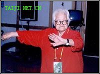知道老人要过寿,全国武术协会、省市武术协会早几天都发来了贺电。而昨天一大早,谁也没招呼,各地的徒子徒孙一百多人都自发来给大师祝寿,包括广东、咸阳等地陈式太极弟子都派代表参加,还有一位上海的王先生一下火车就赶到大师家里。拄着拐棍的老太太不停在给来拜寿的徒子徒孙们指点招数。徒弟送大师的一条幅“法乾坤正道、研太极神功”,正是一代太极宗师陈立清先生的写照。 |