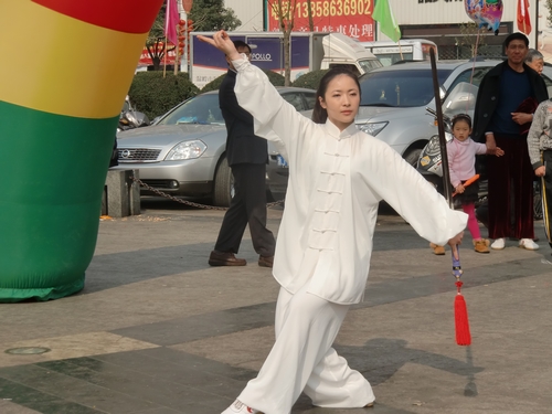 活动在欢庆的大鼓和奔放的腰鼓声中拉开了序幕,全国十运会女子太极拳太极剑第六名、温岭籍运动员余艺娜首先亮相,精湛的太极剑演练获得了全场热烈的掌声;紧接着,陈式、杨式、24式、器械、推手、功夫扇、柔力球全场开花。热闹的场面吸引了观看的市民纷纷参与其中。正月初五上午,是我市太极拳爱好者最开心的一天。几百名来自全市各地的太极拳爱好者集聚在东辉公园广场,享受属于他们的狂欢节——太极嘉年华