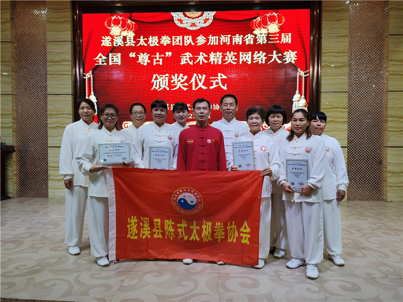 遂溪县陈式太极拳协会积极组织会员先后参加(线下)湛江市第四届传统武术大赛、第十届焦作国际太极拳交流大赛。(线上)的网络视频大赛,如“抗疫大赛”、 尊古精英网络视频,寻找“最美太极人”等大赛共10多次。团队多次被评为《太极拳冠军战队》,《大拳师战队》,《突出贡献奖》等称号。集体和个人总获金牌170枚、银牌189枚、铜牌77枚。累计获金、银、铜牌共436枚。助力遂溪国际长寿之乡的健康益寿质量再创新高,打造了遂溪县长寿养生基地“太极拳”品牌!