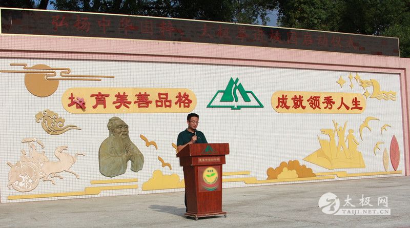 为了弘扬优秀传统文化,丰富校园文体活动,促进学生身心健康, 2018年9月19日下午,惠东中学初中部联合惠东晨健太极拳协会举办“传统武术—太极拳进校园起动仪式”,由县中校长助理李齐军主持,县中工会主席罗汉杰、原县中老校长李惠强(退休)、晨健太极拳协唐艳华老师分别在仪式上讲话。