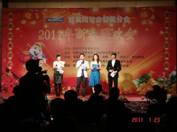 2011年1月23日下午,由欧美同学会留英分会主办,伦敦大学校友会、伯明翰大学校友会承办,曼彻斯特、牛津、剑桥等10家大学校友会协办的“欧美同学会留英分会2011新春联欢会”在北京五星级星河湾会所举行,联欢会由来自北京电视台和黑龙江电视台的著名节目主持人主持,来自欧美同学会总会的领导、英国大使馆文化处的嘉宾与众多留英学长欢聚一堂,共叙友情并观看了精彩纷呈的联欢会。
