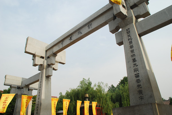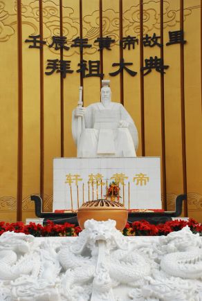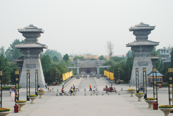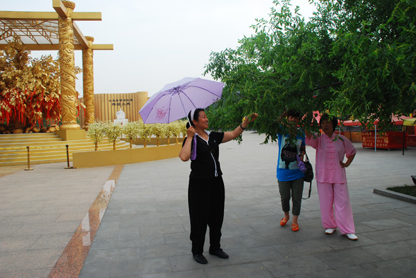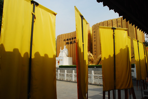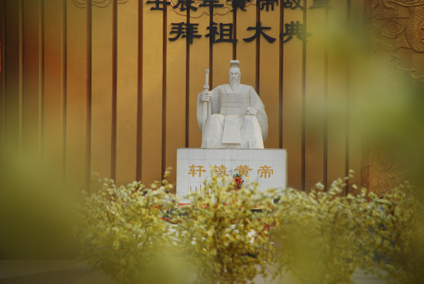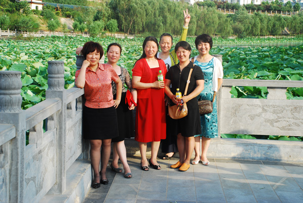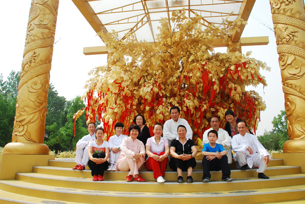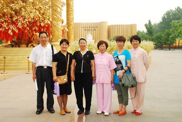 黄帝故里景区轩辕黄帝像合影(左起:卫明堂 李丽 陈桂珍 贾桂玲 张惠芳 敬红卫)